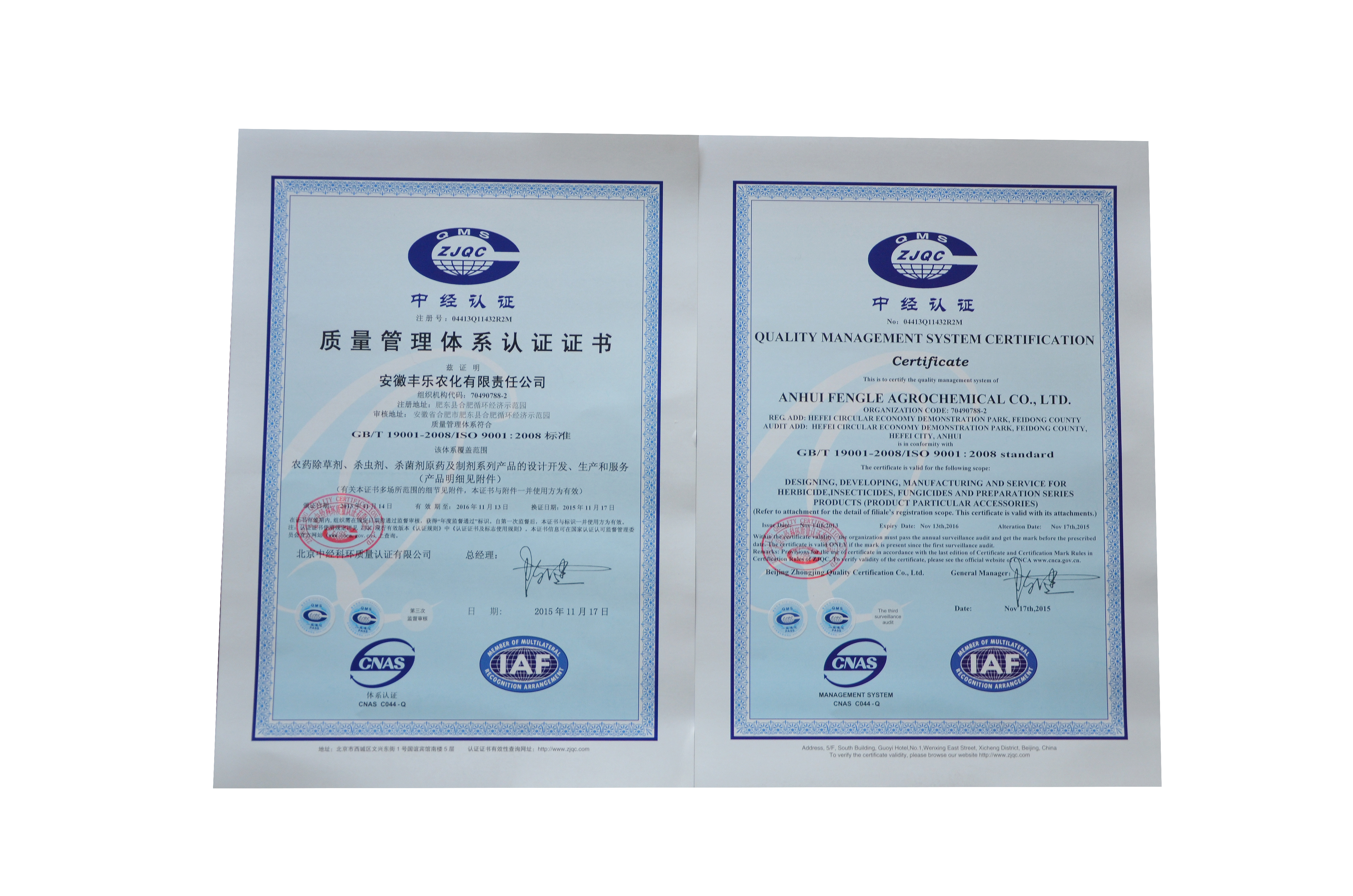 ISO9001质量管理系统认证(证书)